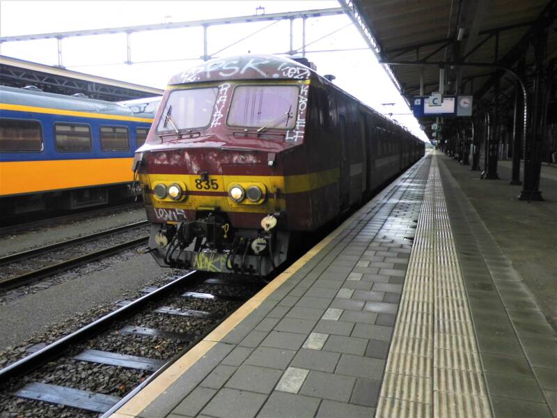 Vanwege problemen met de toelating van gemoderniseerde stellen en een tekort aan ongemoderniseerde stellen werd de L-trein Roosendaal - Puurs gesplitst in een pendeltrein Roosendaal - Essen en een L-trein Essen - Puurs. Vele reizigers klaagden over de verbinding. Hier staat stel 835 in een regenachtig Roosendaal als stoptrein naar Essen.