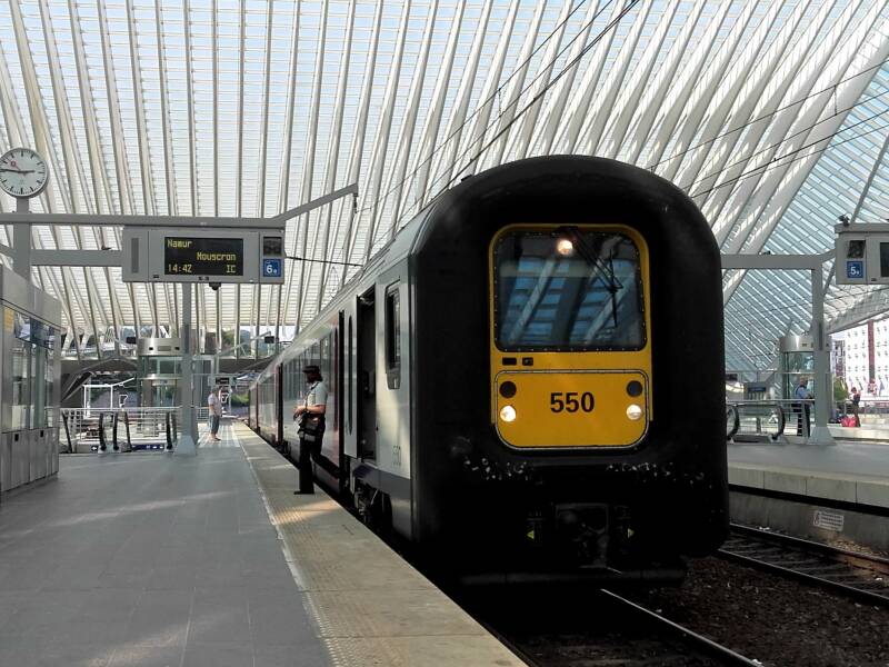 De 550 staat in Liège-Guillemins (Luik-Guillemins) te wachten op vertrek als IC-trein naar Namur (Namen) en Mouscron (Moeskroon.)