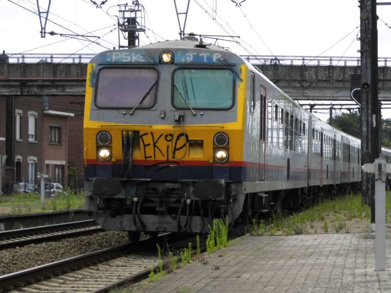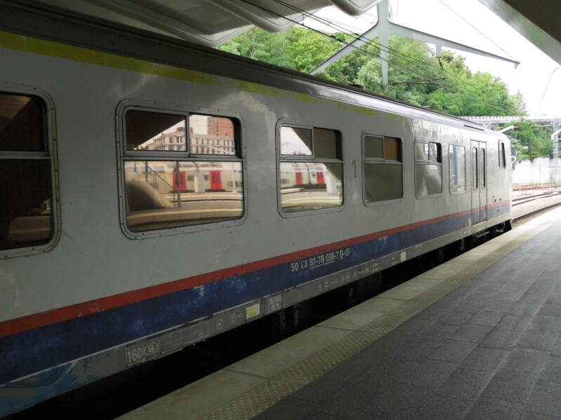De 50 88 81-78 036-7 staat in Liège-Guillemins, te wachten op vertrek als intercity naar Brussel-Zuid.