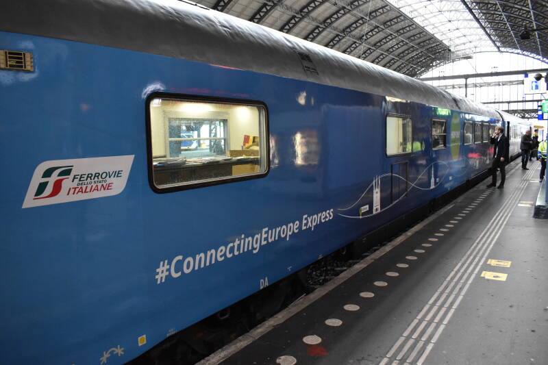 Rijtuig 61 83 88-90 110-9 reed mee in de Connecting Europe Express en staat hier in Amsterdam Centraal.