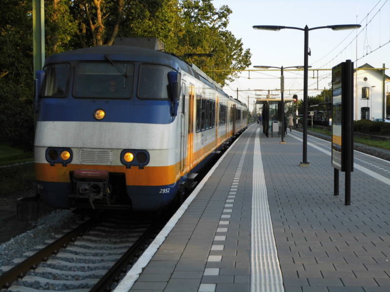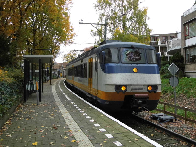 SGMm 2994 maakt een korte stop in Soestdijk, onderweg als sprinter van Baarn naar Utrecht Centraal.
