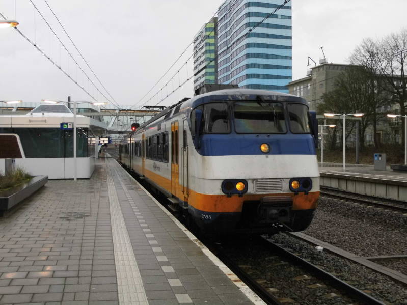 SGMm 2134 staat op het punt om te vertrekken van Arnhem Centraal, als sprinter naar Wijchen.