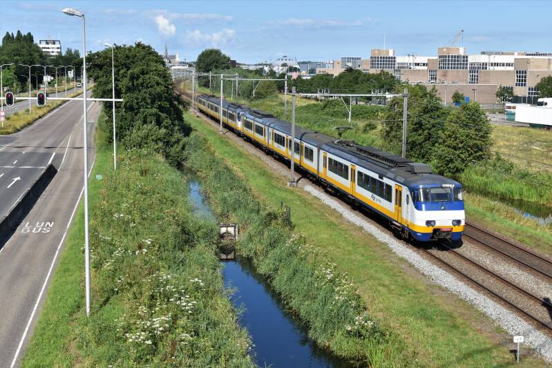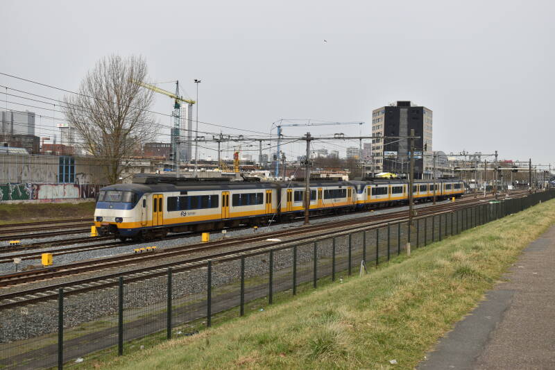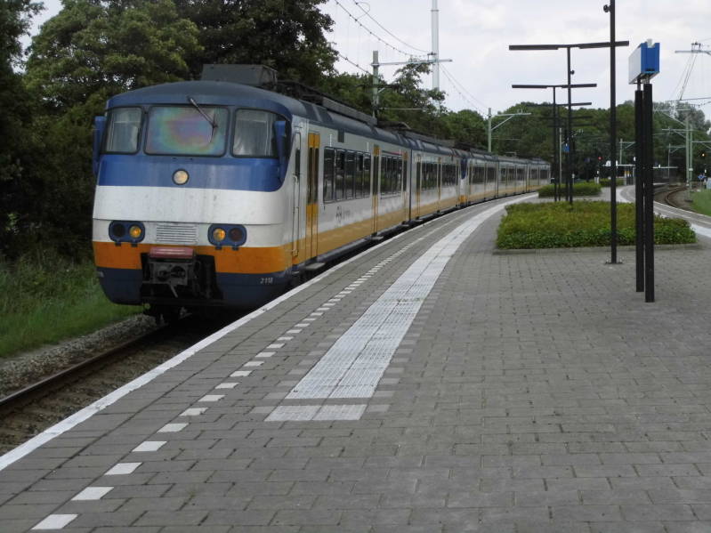 SGMm 2118 vertrekt samen met een andere driedelige SGMm in Driehuis, onderweg als sprinter naar Haarlem en Amsterdam Centraal.