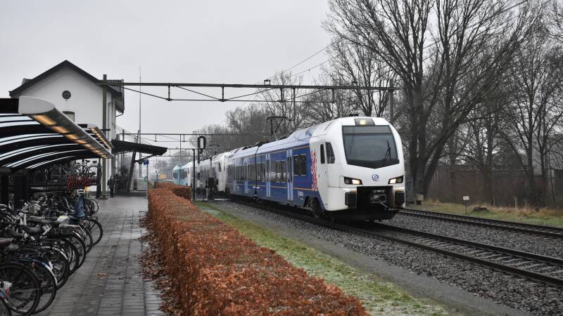 De Flirt 3 treinstellen van Keolis voor de diensten onder het Blauwnet netwerk tussen Zwolle en Kampen en tussen Zwolle en Enschede.