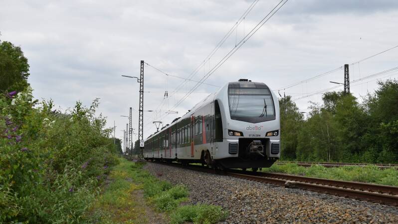 De Flirt 3XL treinstellen die voor Abellio reden op enkele S-Bahnen en RB-verbindingen in Noordrijn-Westfalen. Tegenwoordig rijden ze voor DB.
